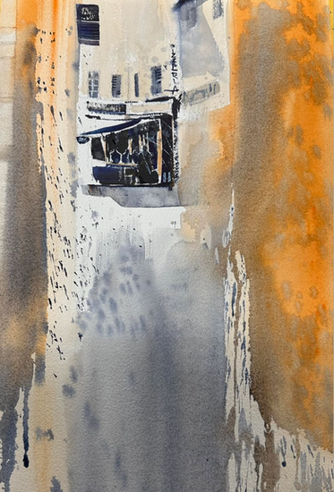Gerda in het kort voorstellen is niet zo eenvoudig. Ze staat bekend voor haar ongedwongen stijl waarbij ze haar doordachte composities op een analytische en intuïtieve manier benadert van binnen uit. Haar onafgewerkte aquarellen geeft de kijker altijd nog de kans iets toe te voegen, zodat er een interessante interactie ontstaat tussen de schilder en de toeschouwer.